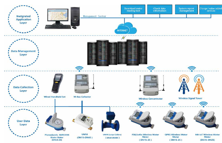 It is able to automatically read the metering data via wireless remote network and control the close / open of the valve, and is also able to transfer the data to the back-office system (data center) after reading the meters by a wireless handset reader.